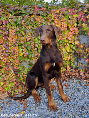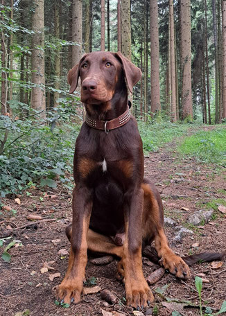 Shiraz trägt die Sonderfarbe brown/tan, ein Rassenreinheitstest wurde von einer Tierklinik durchgeführt und vom CANIX Labor ausgewärtet und bestätigt: